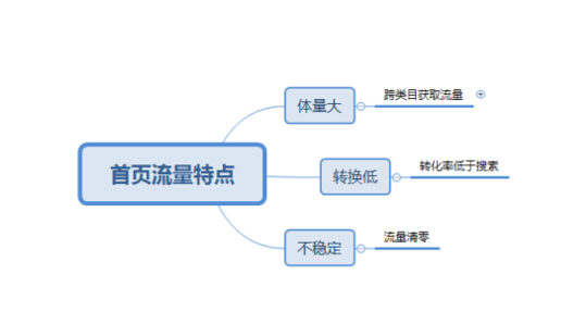 很多店铺的首页已经远远超过搜索流量,还有就是它能够实现跨类目获取流量。之前接触的很多客户,很早就布局首页流量的,都获得很好的回报,流量已经远超竞争对手,而且也随着淘宝的不断优化,转化率也是很好的,只要跟的上步伐,一切都好解决。
