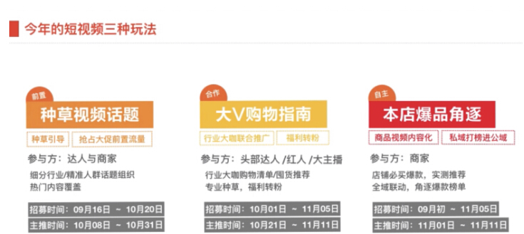 而在双11期间,淘宝短视频也推出了一系列玩法,助力商家更好地完成内容升级、获取公域流量。来跟着天猫代运营一起看看今年双11淘宝短视频的玩法、节奏及注意事项吧~