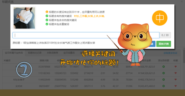 对于新手来说,很多人还看不太懂生意参谋中的数据,更别说利用生意参谋来进行选词和组合标题,建议新手可以在服务市场中选择一款带有标题优化功能的工具(如旺店宝)来帮助自己选词和组合标题。