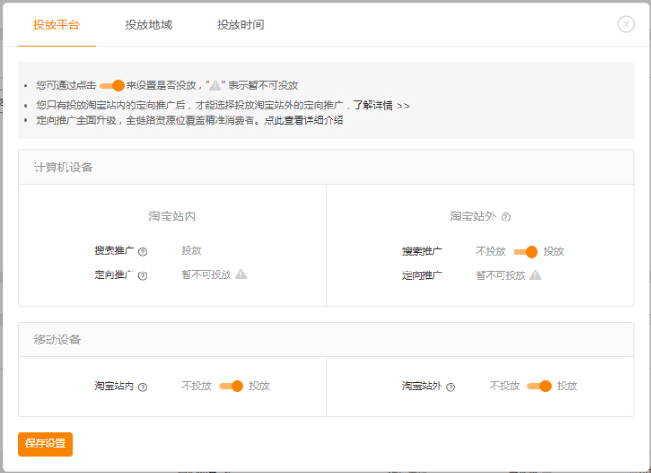 ⑵投放平台,我们只投放站内无线端,不投站外。因为现在大众逛淘宝基本都是通过无线端去逛了。