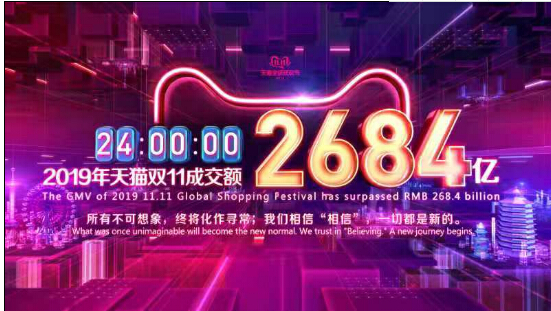 24时00分00秒,天猫双11成交额定格在2684亿元。