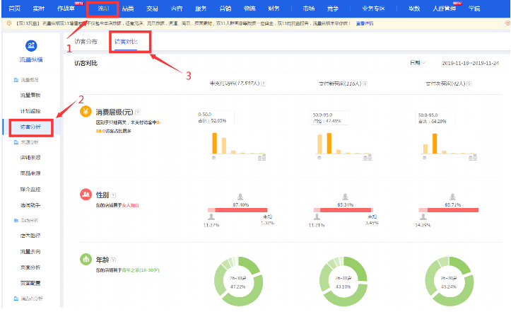 在生意参谋里面去查看。生意参谋---流量---访客分析---访客对比。