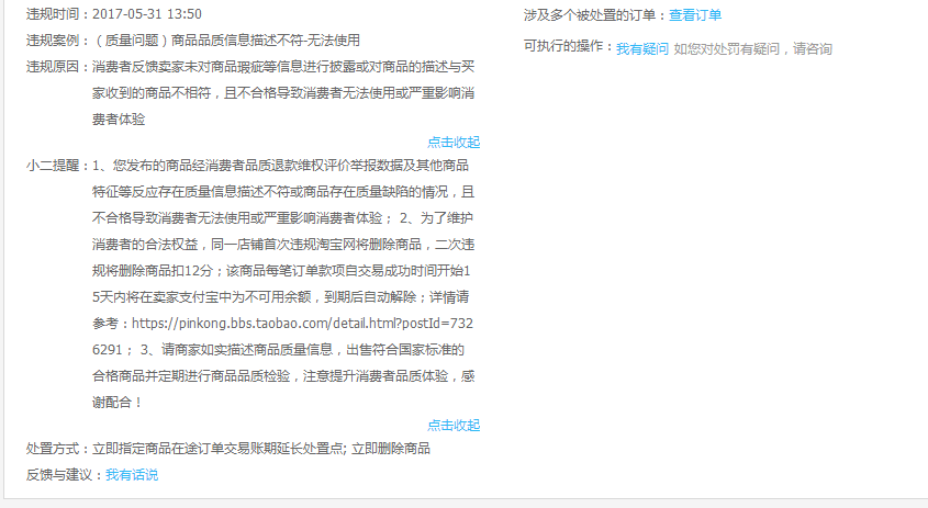 因此如果有店铺第一次出现此种情况,如果无法确保整个页面都整改正确,建议先直接下架此款宝贝。