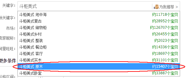 但是这个词延伸到斗柜实木整装经济型的时候已经无法搜索到宝贝了。这个时候不用怕不用慌,我们继续拿核心词去搜,再去寻找二级词。