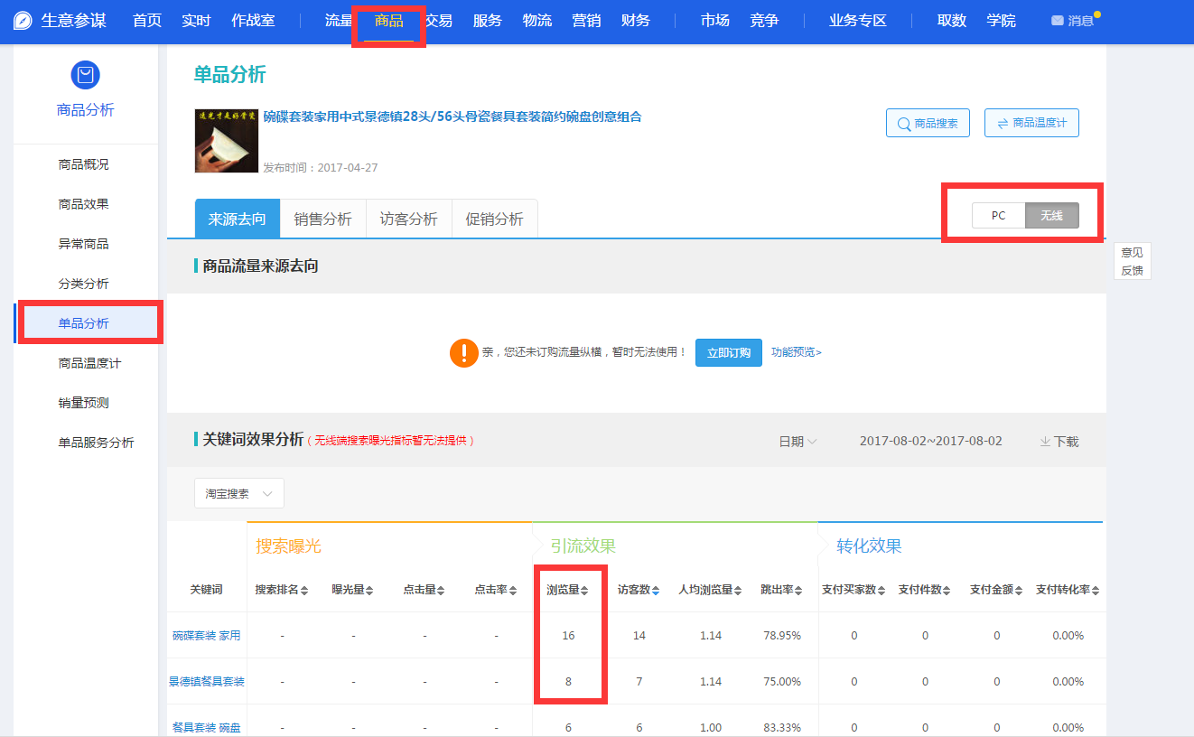 那么你知道你的无线端是否有曝光吗。流量不多也是流量。我们是建立在你的产品有曝光的基础上。如果说本身你的产品就没有曝光,那么问题就在于你根本展现,那就直接确定了是你自然引流的问题。