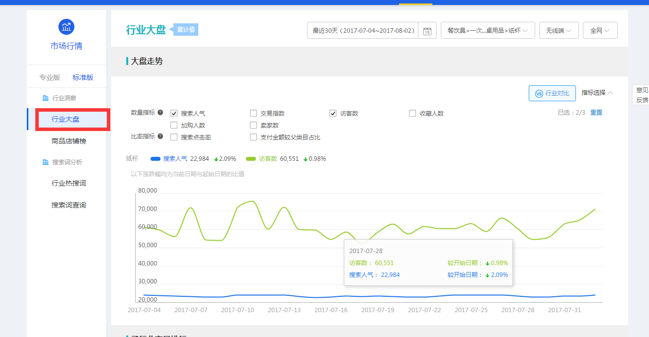 如果是突然下降了没有就看前几天的高流量时候是否做了什么活动,没维持住数据,整体行业是否下滑了,还有竞争对手,产品的价格,同类型产品的热销价格区间。