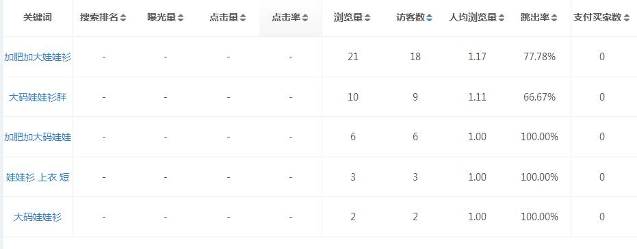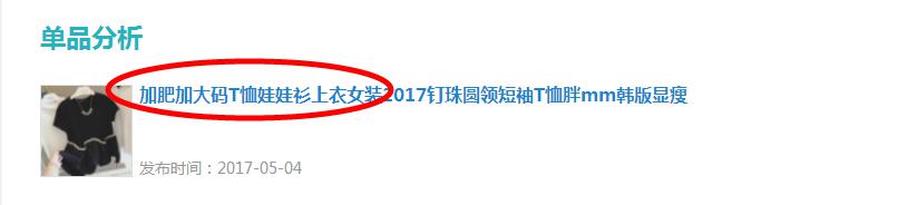 2、分析权重最大核心词,比如说下面的权重最大的词是”大码娃娃衫“