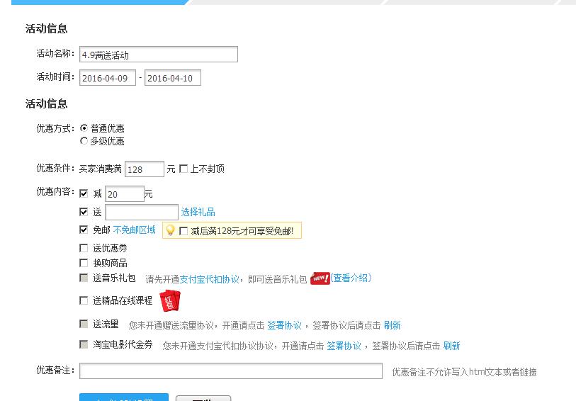 如上图设置好,点击保存就可以了,我们可以设置普通优惠,也可以设置多层级优惠,具体的采取哪种形式的优惠方式,结合店铺的实际情况和店铺的活动力度去设置就ok了