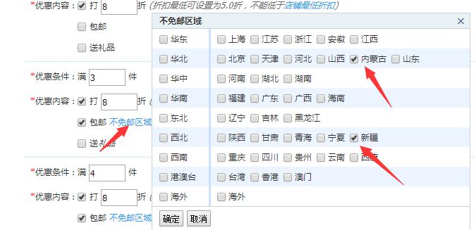 这样设置之后,及时顾客在进店购买的时候,及时满足活动门槛,尤其他是我们设置的偏远地区的顾客,也是不享受此优惠活动的,当然,是否设置不免邮地区还是要根据你的产品的利润情况而定!