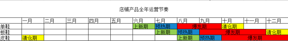接下来对进行分析,将上新期,预热期,爆发期,清仓期的时间登记在一个表格上,做了一个比较,如图所示,