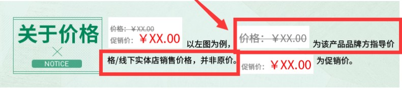 1、商家在商品界面上填写的所有价格,均应严格遵守法律规定,确保可以提供所有价格的合法依据或可供比较的出处。
