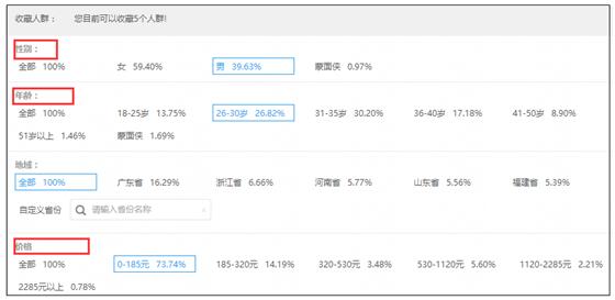 你要选择最近7天的数据,然后选择无线端(因为这毕竟是主流),然后你可以看到你的买家人群画像(也就是说,你店铺的主要标签,比如这个店铺,女性消费者就是主流,年龄段在26——35之间的最多,主流消费价格是185元以下)。