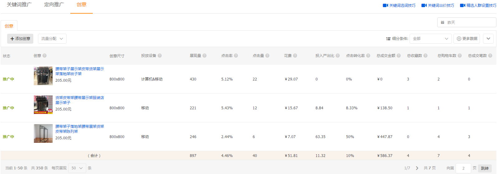 选好款之后,我们可以通过直通车去测一下我们选择的款的效果,首先进行选词,选择和自己宝贝匹配的关键词,一般如果你做的关键词的两天的总展现在5000左右,在这期间,注意均化每个关键词的展现,点击率基本高于行业平均值,那么基本上你的宝贝就具备爆款的潜质了,这样的宝贝就很容易做起来。