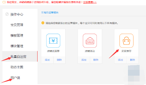 用户进入一个宝贝的详情页看了之后可能不喜欢,不会买,但是如果在详情页做了关联搭配就可以减少跳失率,还有可能成交了关联搭配的商品,这也是提升转化率的有效的方法。比较专业的关联搭配是美工做关联搭配的海报装修到详情页上去,简单一点的是官方的卖家推荐,没有美工也可以轻松完成。卖家推荐的效果如图所示,设置卖家推荐是在神笔-批量自运营-卖家推荐,里面设置的,如图。
