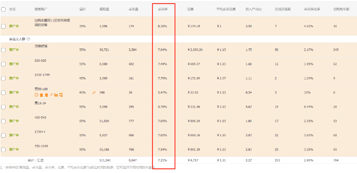 首先定向是主动投放,人群不精准投放的人群根本就是广撒网。明明是卖鞋子的,搜索袜子过几天也能在猜你喜欢里面看到,这样的投放毫无意义,人群标签关键词强度没有,投放点击率极低,没有效果。