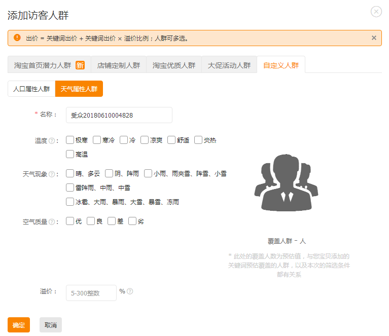 这里为什么要自定义人群,对于了解自己产品人群的掌柜是非常实用的,可以通过自定义人群选择更精准买家。你比如说喜欢商品风格,价格,性别,年龄,地域气候情况等等人群选择性投放,这样可以做到让这些更精准的买家提升商品的点击率,同时也获得更多的优质精准转化。溢价比例可以根据出价点击情况提升或降低设置,建议测试计划人群溢价比例20%-50%就可以了,目的就是为了减少更多的扣费损失和获取到更好的效果。